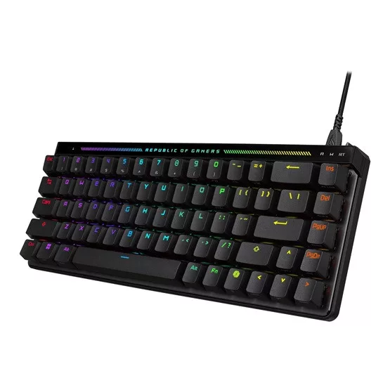 65%-os gamer billentyűzet • Kiosztás: US • Vezetékes kialakítás • Csatlakozás: USB 2.0 (Type-C to Type-A) • Mechanikus kapcsolók: ROG HFX Magnetic Switch • Beépített memória • Háttérvilágítás: Aura Sync RGB • Anti-Ghosting