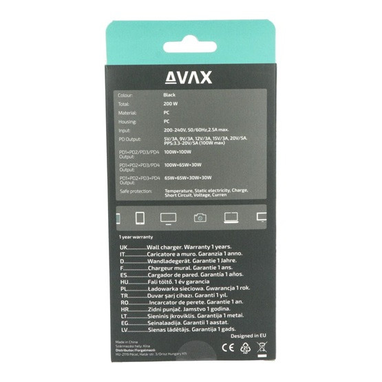- Teljesítmény a maximumon: A töltő teljes töltési kapacitása 200W, amely lehetővé teszi több eszköz gyors és hatékony töltését egyszerre legyen az Laptop, Tablet, Telefon vagy bármilyen okoseszköz, akár egyszerre is.