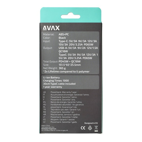 - Ugrás a gyorsaság és sokoldalúság világába, 65W ULTRA gyors töltés funkcióval: A powerbankünk rendelkezik egy hagyományos USB-A csatlakozóval, ami akár 18W-os töltést is biztosít. ÉS! ez még nem minden! Emellett egy különleges 65W-os gyorstöltésű Type-C töltő is rendelkezésedre áll. Ez a lenyűgöző funkció nemcsak az okostelefonok vagy tabletek gyorstöltését teszi lehetővé, hanem még a notebookodat is képes gyorsan energiával ellátni. Mostantól nem kell sokáig várnod a notebookod feltöltésére, hiszen pillanatok alatt képes lesz teljesen feltöltődni a powerbankünk segítségével. Tapasztald meg az elképesztő sebességet és hatékonyságot, amit ez a powerbank nyújt a mindennapi életedben!