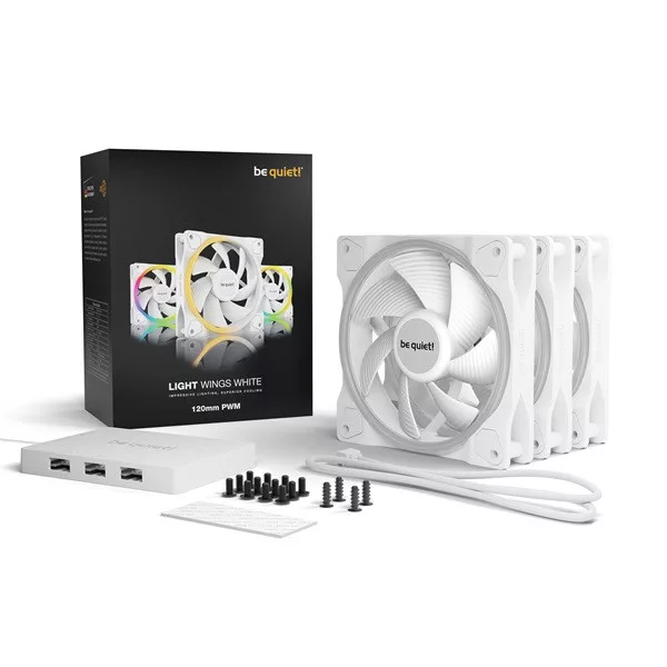 A Light Wings White 120 mm PWM Triple Pack (tripla csomag) figyelemfelkeltő, egyedi megjelenést teremtő, dekoratív világítást kínál erős teljesítmény, csendes működés és hatékony hűtés mellett. Ha minden irányból mutatós, csendes házventilátorokat keresel, a Light Wings White 120 mm PWM a legjobb választás.