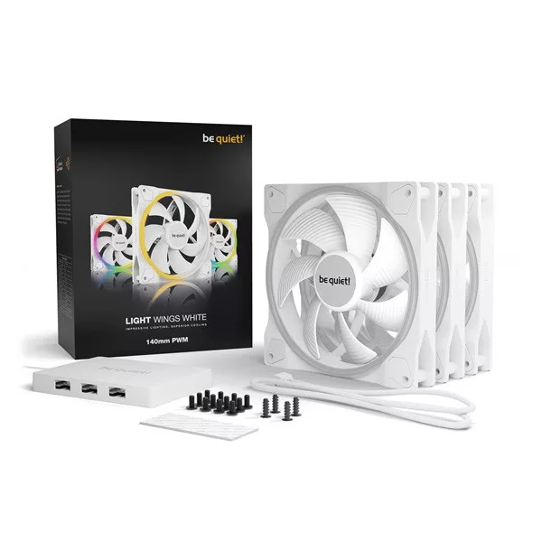 A Light Wings White 140 mm PWM Triple Pack (tripla csomag) figyelemfelkeltő, egyedi megjelenést teremtő, dekoratív világítást kínál erős teljesítmény, csendes működés és hatékony hűtés mellett. Ha minden irányból mutatós, csendes házventilátorokat keresel, a Light Wings White 140 mm PWM a legjobb választás.