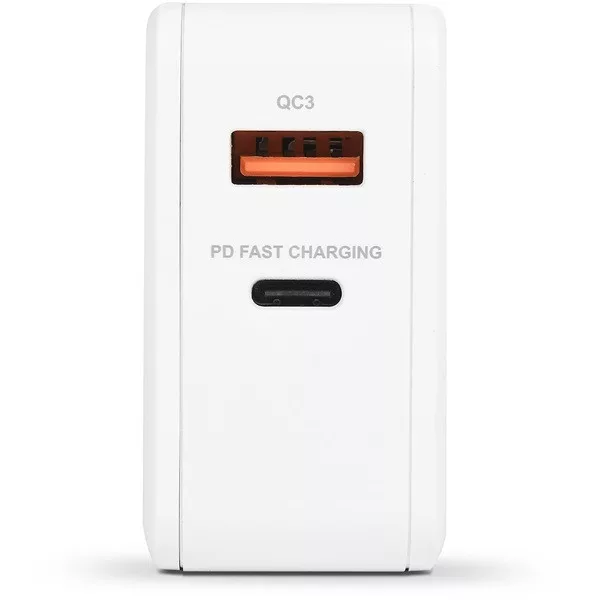 Bluestork Hálózati töltő - PW-BS-65-GAN-C-A-W (USB-C, USB-A, 65W, 1,8m kábel, gyorstöltés, fehér)
