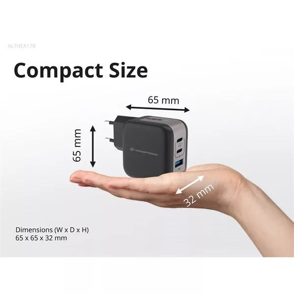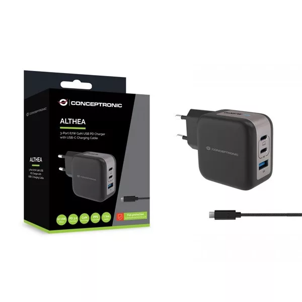 ALTHEA17B 3-Port 67W GaN USB PD Charger with USB-C Charging Cable, USB-C x 2, USB-A x 1, QC 3.0, PPS, PD 3.0