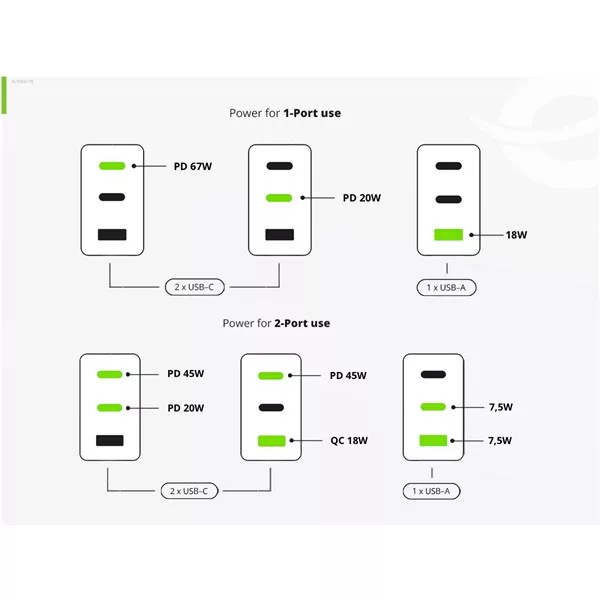 - High-Power GaN Technology: This charger utilizes advanced Gallium Nitride (GaN) technology, providing up to 67W of total power for faster and more efficient charging.