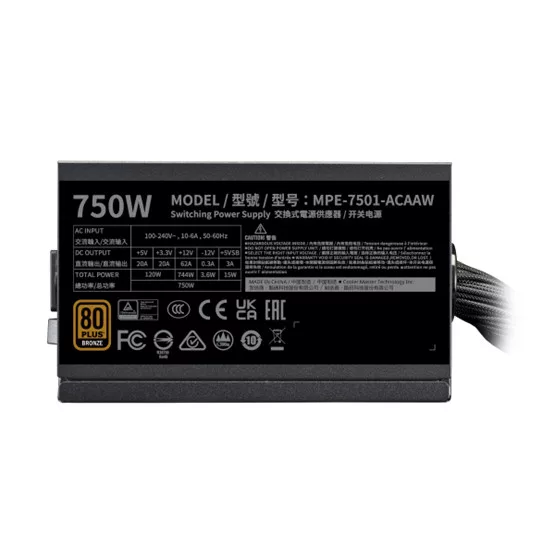 Cooler Master 750W - MWE Bronze 750 V3 - MPE-7501-ACAAW-3BEU - 80+ Bronze ATX3.1 - Fekete Tápegység