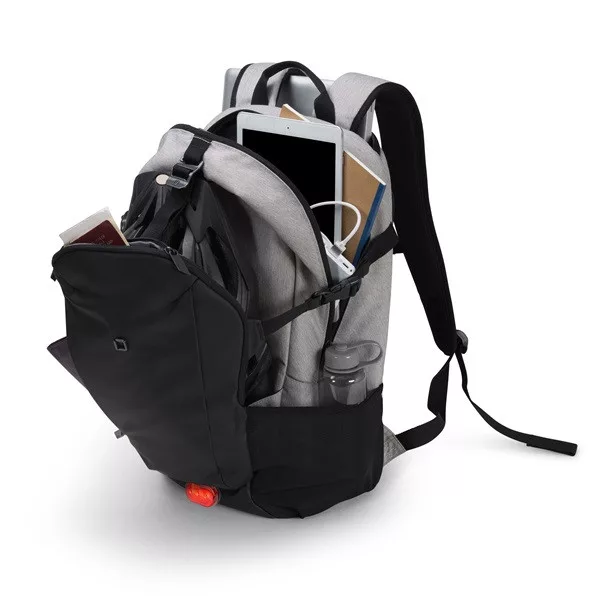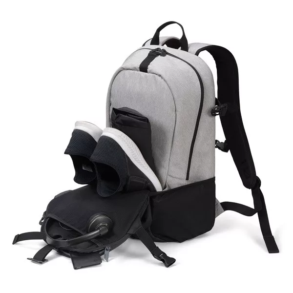Stílusos és funkcionális, ez az eredeti hátizsák elfér benne az edzőtermi és munkahelyi kellékeid. A Backpack GO kényelmesen hordozható ergonomikus hátpárnázásának és párnázott vállpántjainak, valamint állítható mellkasi övének köszönhetően. Hordozófogantyúval is rendelkezik. A nyitott elülső rekesz könnyen bővíthető, így elfér benne bármi, amire szükséged van. Pakold be sportcipődet, kerékpáros sisakot vagy nedves sportruhát, és rögzítsd könnyedén az oldalsó fémkampóval és kompressziós pántokkal. A hátizsákhoz tartozik egy levehető esővédő, fényvisszaverő DICOTA logóval.