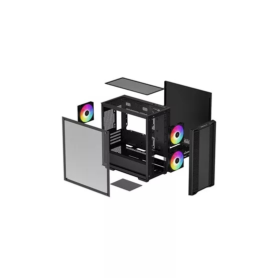 SZÍN: Fekete, FÉRŐHELY: 2x 3,5", 2+1x 2,5" , ELŐLAP: 1x USB3.0 - 1x USB2.0 - Audio, BEÉPÍTETT VENTILÁTOROK SZÁMA : 2+1 (ARGB)