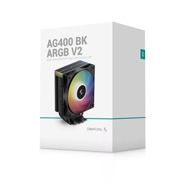 DeepCool CPU Cooler - AG400 BK ARGB V2 (31,6 dB; max, 128,93 m3/h; 4pin csatlakozó, 4 db heatpipe, 12cm, PWM)