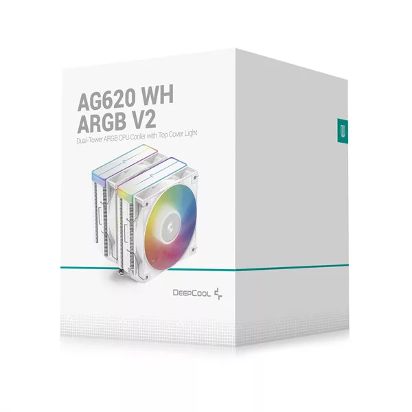 DeepCool CPU Cooler - AG620 WH ARGB V2 (29,4 dB; max, 115,32 m3/h; 4pin csatlakozó, 6 db heatpipe, 12cm, PWM, fehér)