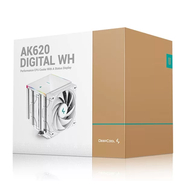 DeepCool CPU Cooler - AK620 Digital WH (28 dB; max, 117,21 m3/h; 4pin csatlakozó, 6 db heatpipe, 2x12cm, PWM, fehér)