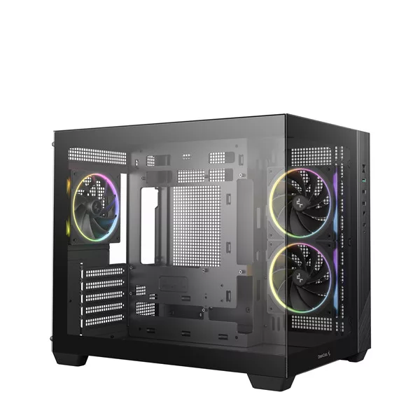 DeepCool Számítógépház - CG330 3F (fekete, ablakos, 3x12cm A-RGB, BTF, mATX, 2xUSB3.0, 1xUSB2.0)
