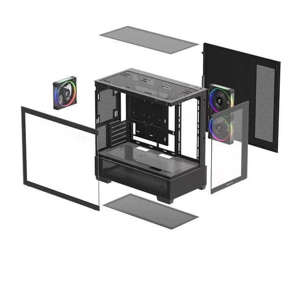 DeepCool Számítógépház - CG380 3F (fekete, ablakos, 3x12cm A-RGB, BTF, mATX, 2xUSB3.0, 1xUSB2.0)