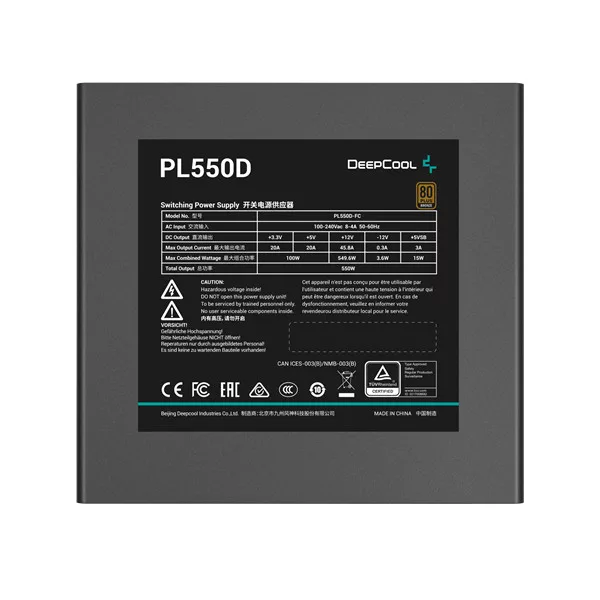 DeepCool Tápegység 550W - PL550-D (80 Plus Bronze, ATX3.1, Aktív PFC, 12cm )