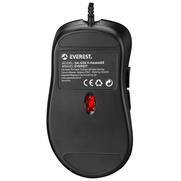 Everest Gamer Egér - SM-G58 X-HAMMER  (7200 DPI, 7gomb, 1,5m harisnyázott kábel,optikai, fekete, RGB LED)