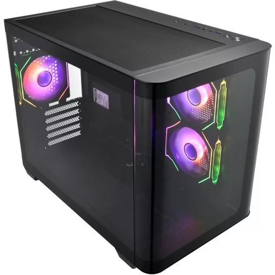 Az FSP S380 egy mikro-ATX mid-tower számítógépház, amely 270°-os átlátszó, ívelt üveg oldallappal rendelkezik, így tökéletesen bemutatja a gamer gép alkatrészeit. A ház három előre telepített 120 mm-es ARGB ventilátorral és csendes, fordított oldalventilátorokkal van felszerelve, melyek alaplappal is vezérelhetők, biztosítva a kiváló hűtést és látványos világítást. A ház támogatja a maximum 160 mm magas CPU hűtőt és akár 445 mm hosszú videokártyákat is, továbbá nagy kapacitással rendelkezik a jövőbeni bővítésekhez, például három 2,5"-es SSD-t és két 3,5"-es HDD-t is befogad. Stílusos, lekerekített 3D üveg előlappal és Type-C, USB 3.0 portokkal is ellátott, ideális választás a hatékony és esztétikus gaming gépépítéshez.