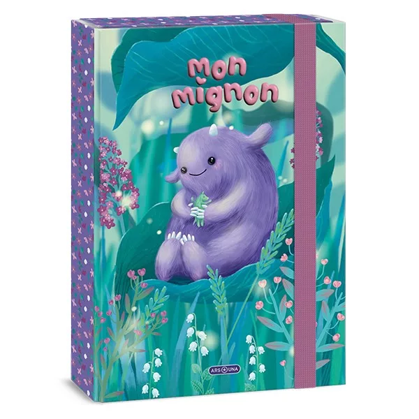 A/4 méretű füzetbox. Kemény, tartós kartonból, 4 cm-es gerinccel, fényes fóliával, 7 mm széles gumipánttal. Belseje egy színnel nyomott. Füzetek, iratok tárolására .