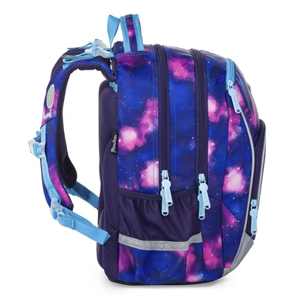 Az OXY GO sorozat iskolai hátizsákja első pillantásra magára vonja a figyelmet. Tökéletes formája anatómiailag kialakított, légáteresztő hátrésszel párosul, a vállpántok pedig állíthatók a még nagyobb kényelem érdekében. Két belső zseb bőséges helyet biztosít tankönyveknek, füzeteknek és szabadidős holmiknak. Masszív, vízálló alj védi a tartalmat. Oldalt két kisebb zseb található: az egyik nyitott, a másik cipzáras. Fényvisszaverő elemek a jobb láthatóságért. Ideális 1–3. osztályos gyermekeknek, 125 cm testmagasságtól. Űrtartalom: 22 l, teherbírás: 8 kg.