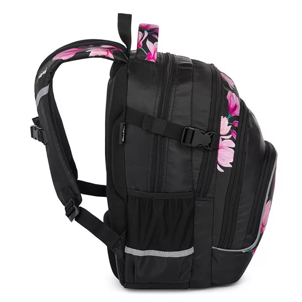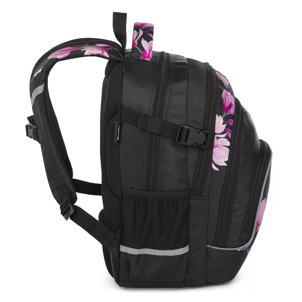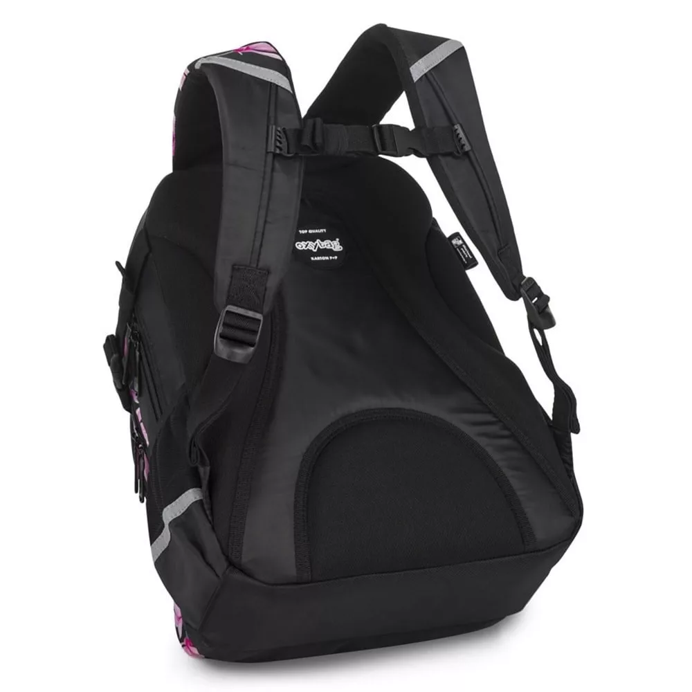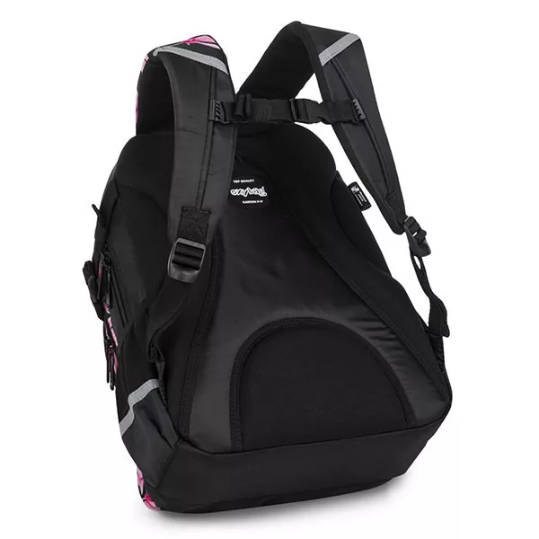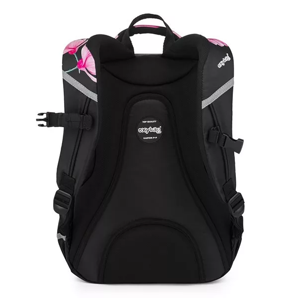 Az OXY Scooler hátizsák ideális választás 3. osztálytól azoknak, akiknek minden fontos dolognak helyet kell találniuk. A háromrekeszes kialakítás bőséges teret kínál tankönyveknek, füzeteknek és uzsonnának. Beépített rendszerező, belső zseb és laptoprekesz is található benne. Az oldalzseb tökéletes kulacsnak, a kulcs- vagy chip-tartó pedig megkímél a keresgéléstől. Az anatómiailag formázott, légáteresztő hátrész, az állítható vállpántok és a mellkaspánt hosszabb viselésnél is kényelmet biztosítanak. A megerősített, vízálló alj védi a tartalmat a nedvességtől, a fényvisszaverő elemek pedig növelik a biztonságot. Űrtartalom: 28 l, teherbírás: 8 kg.
