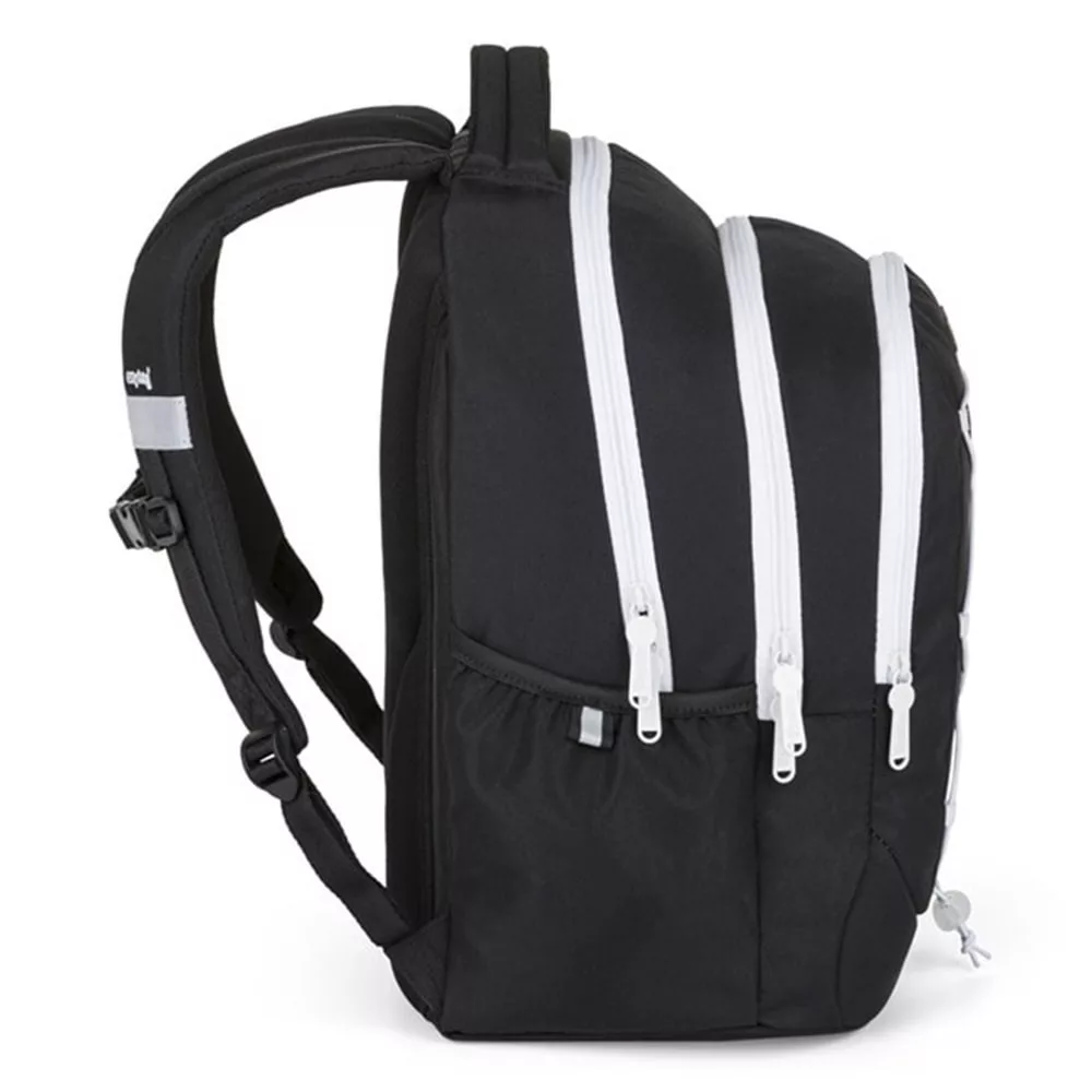 Az OXY Touch hátizsák ideális választás 3. osztálytól. Háromrekeszes kialakítása bőséges helyet biztosít tankönyveknek, füzeteknek, uzsonnának és egyéb szükséges felszereléseknek. A fő rekeszben laptopzseb található, az elülső zsebben pedig rendszerező és kulcskarabiner. Az oldalzsebben kényelmesen elfér egy kulacs. Az anatómiailag formázott, légáteresztő hátrész, valamint az állítható váll- és mellkaspántok kényelmes viseletet biztosítanak teljes terhelés mellett is. A megerősített, vízálló alj védi a tartalmat a nedvességtől, a fényvisszaverő elemek pedig növelik a biztonságot. Az elején praktikus gumipánt található, amely alá például egy vékony pulóver rögzíthető. Űrtartalom: 25 l, teherbírás: 8 kg.