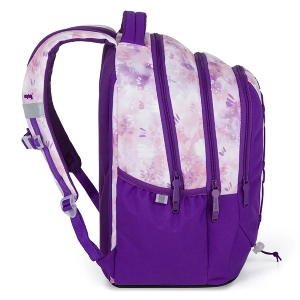 Az OXY Touch hátizsák ideális választás 3. osztálytól. Háromrekeszes kialakítása bőséges helyet biztosít tankönyveknek, füzeteknek, uzsonnának és egyéb szükséges felszereléseknek. A fő rekeszben laptopzseb található, az elülső zsebben pedig rendszerező és kulcskarabiner. Az oldalzsebben kényelmesen elfér egy kulacs. Az anatómiailag formázott, légáteresztő hátrész, valamint az állítható váll- és mellkaspántok kényelmes viseletet biztosítanak teljes terhelés mellett is. A megerősített, vízálló alj védi a tartalmat a nedvességtől, a fényvisszaverő elemek pedig növelik a biztonságot. Az elején praktikus gumipánt található, amely alá például egy vékony pulóver rögzíthető. Űrtartalom: 25 l, teherbírás: 8 kg.