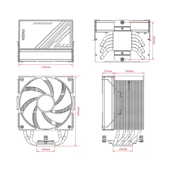 ID-Cooling CPU Cooler - FROZN A610 ARGB (29.9dB; max. 132,54 m3/h; 4pin, 4 db heatpipe, 12cm, A-RGB, PWM)