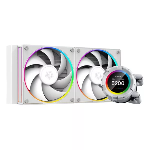 ID-Cooling CPU Water Cooler - Space SL240 WHITE (13.8-30.5dB; max. 132,52 m3/h; 2x12cm, A-RGB LED, fehér)