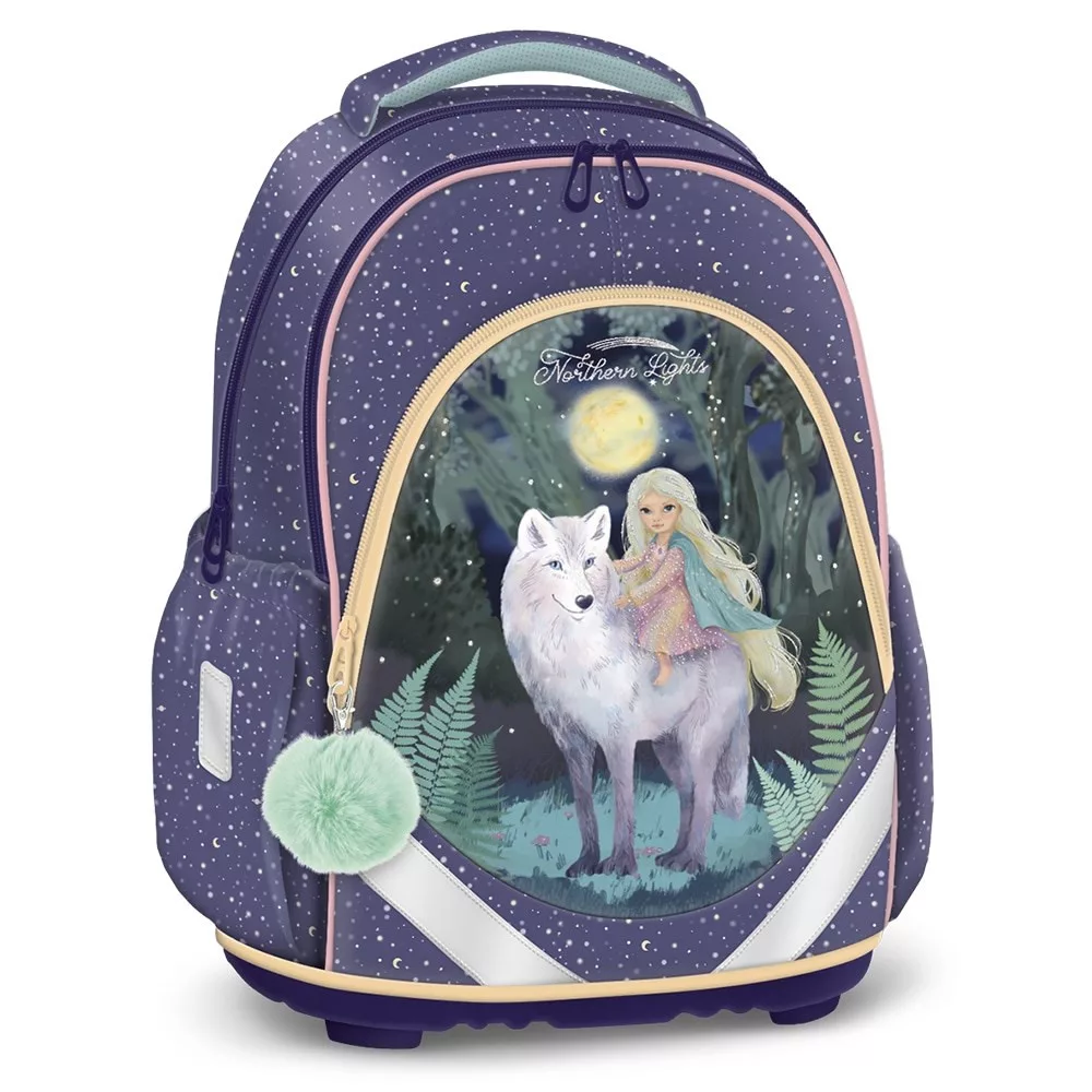 Hátizsák formájú iskolatáska, amely ideális kisiskolásoknak. Ergonómikus kialakítású, szellőztető barázdákkal teli és műanyag merevítésű hátkiképzéssel. Puha, méretre állítható vállpántokkal, amelyekekkel szabályozható, hogy mennyire álljon feszesen a gyerek hátához simulva a táska. A hátizsák három nagy cipzáras rekesszel rendelkezik,az elsőben toll- és igazolvány tartó rekesz található. Oldalán két gumis zsebbel a kulacs részére. Alja tartós és kemény textillel bevont műanyag. Nagy felületű fényvisszaverő elemekkel elől, oldalt és a vállpántokon. Tetején fogantyúval. Ajándék pompom a táskához. Mérete: 330x430x220 mm. Súlya: 0,9 kg. Táska űrtartalma: 23 l. Terhelhetőség: 10 kg-ig. 3 év garancia.