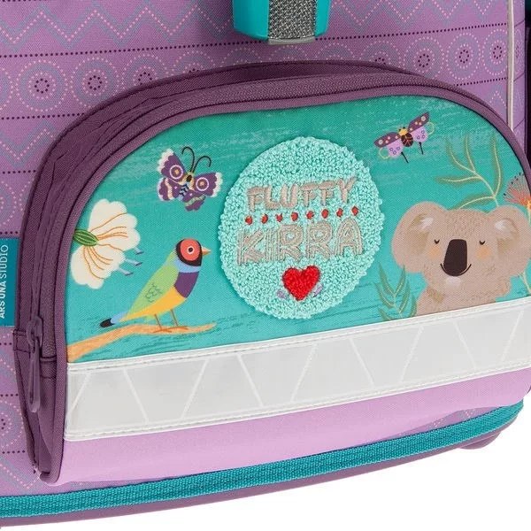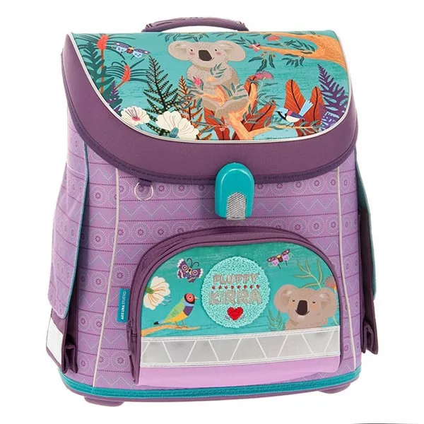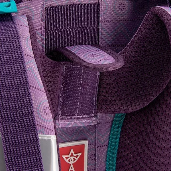 Gerinckímélő, vastagon párnázott, merevített, ergonómikus hátkiképzéssel. Puha, méretre állítható vállpántokkal és plusz állítható pántokkal, amelyekekkel szabályozható, hogy mennyire álljon feszesen a gyerek hátához simulva a táska.