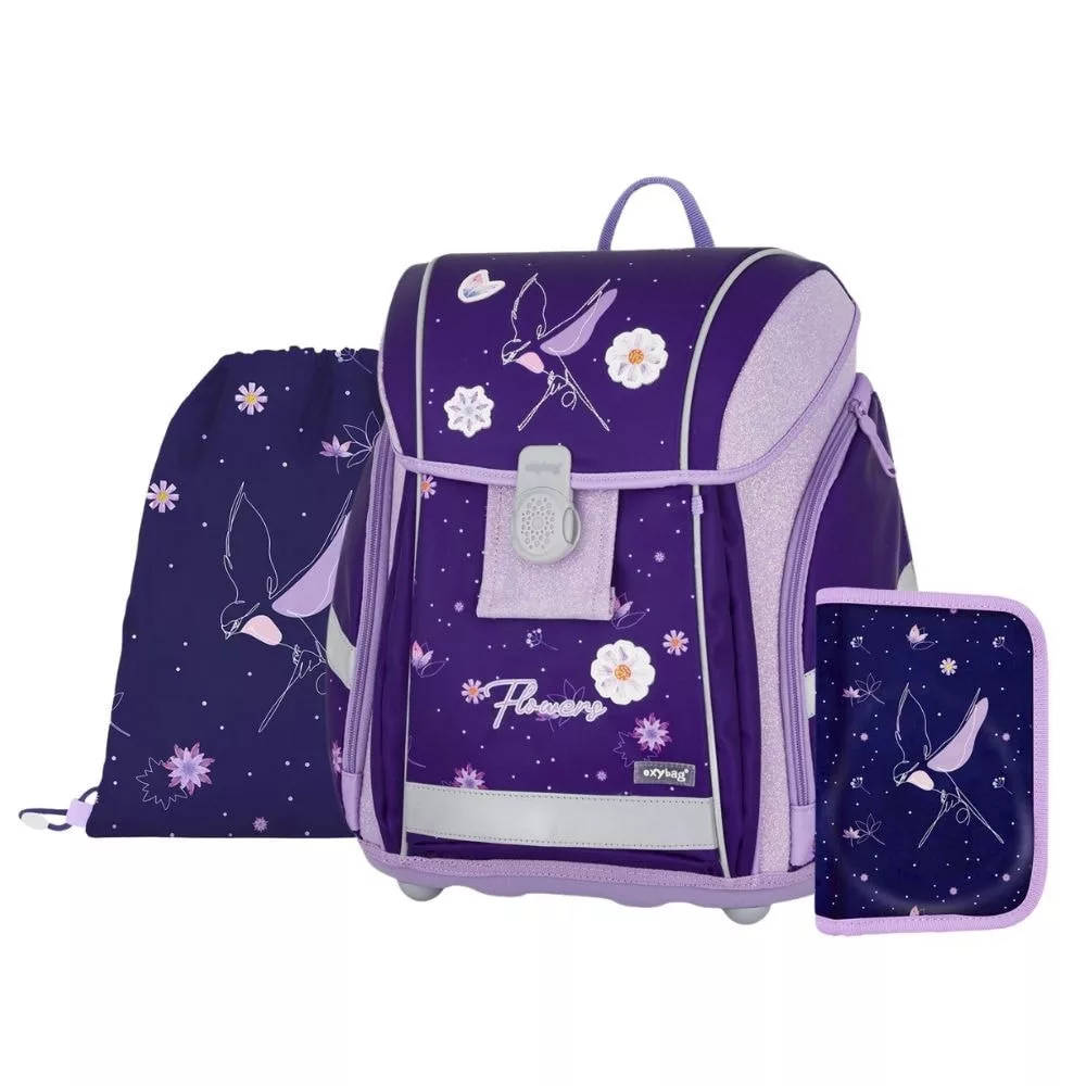 Iskolatáska szett OXY Premium Light 3 részes Flowers tolltartóval és tornazsákkal