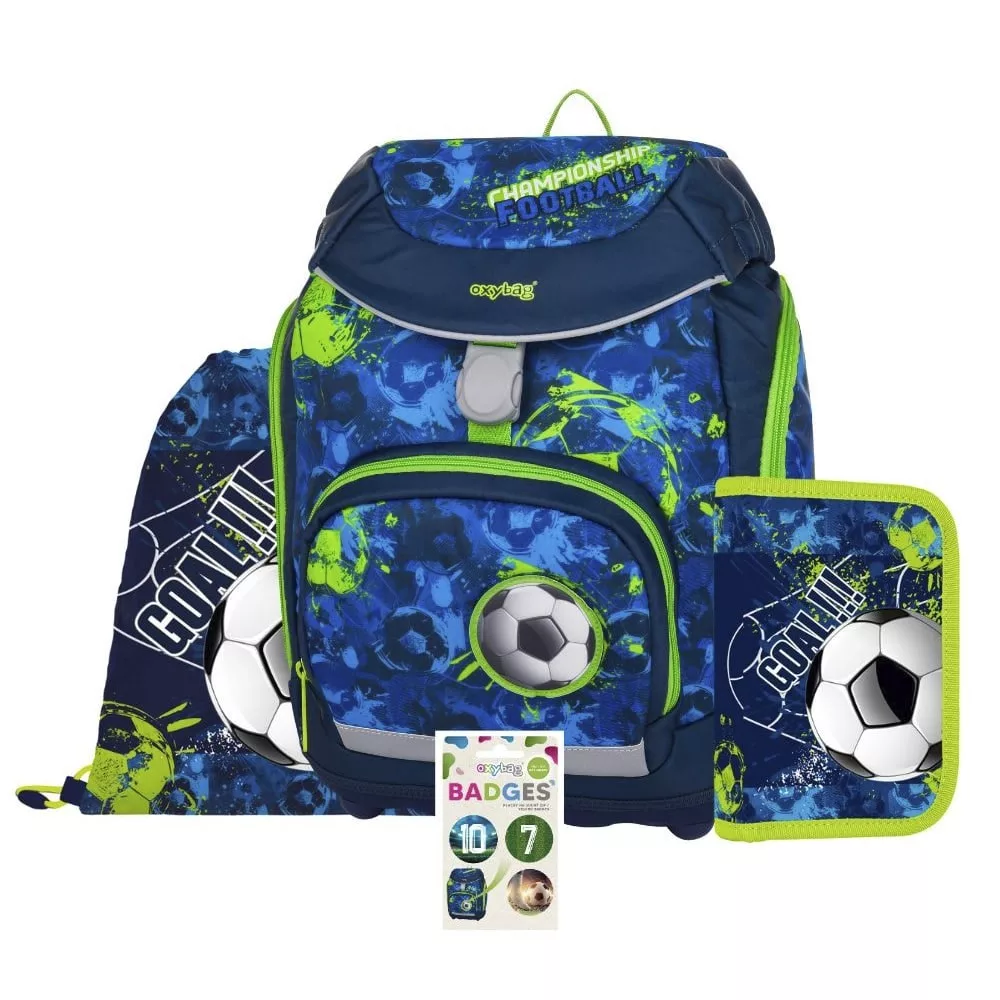 Iskolatáska szett OXY SHERPY 4 részes Football tolltartóval, tornazsákkal és cserélhető matricával