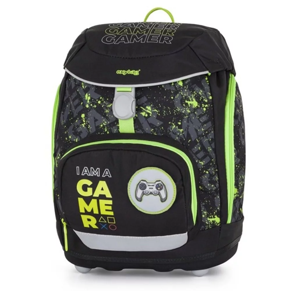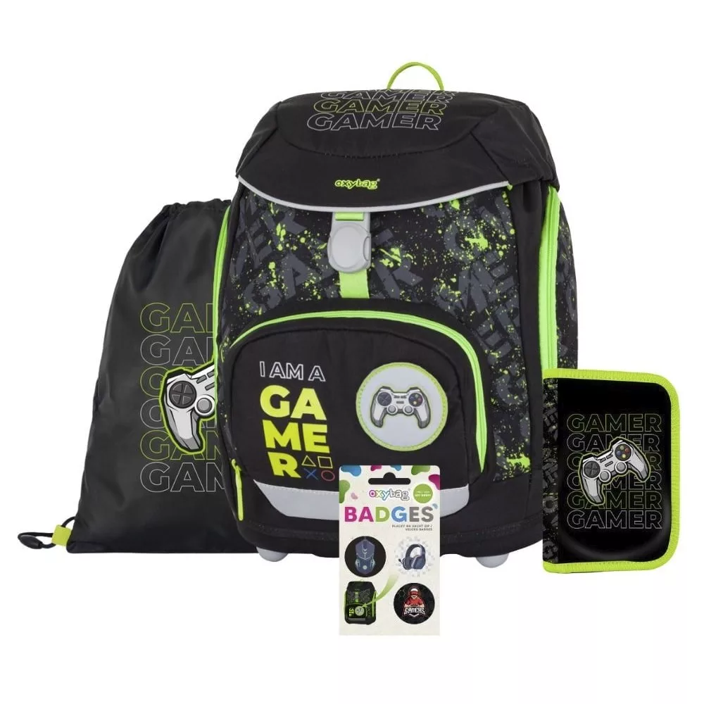Iskolatáska szett OXY SHERPY 4 részes Gamer tolltartóval, tornazsákkal és cserélhető matricával