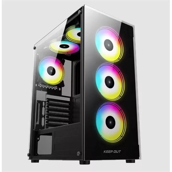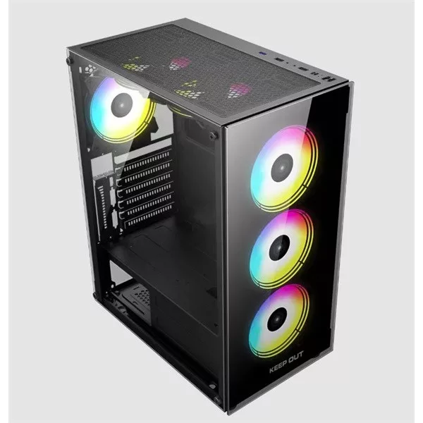 KEEP OUT Számítógépház - XC-210 GLASS (fekete, ablakos, 4x12cm ARGB venti, ATX, 2xUSB2.0, 1xUSB3.0)