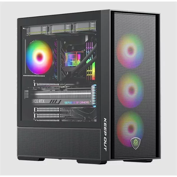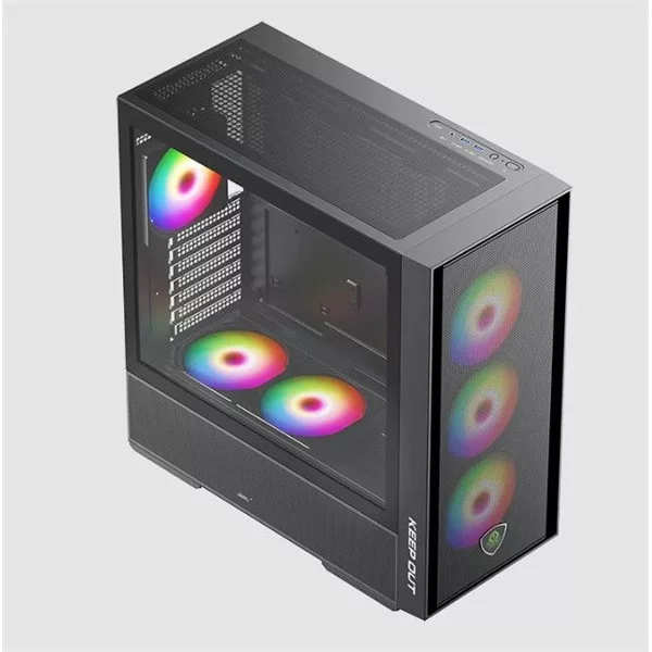 KEEP OUT Számítógépház - XC-805 MESH (fekete, ablakos, 6x12cm ARGB venti, microATX, 2xUSB2.0, 2xUSB3.0)