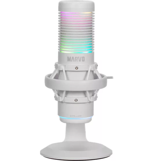 A Marvo MIC-07 WH egy vezetékes USB mikrofon, amely elsősorban gamer használatra készült, és kiváló minőségű hangátvitelt biztosít. A mikrofon IC modellje az AMP1821 zajcsökkentő chippel van ellátva, érzékenysége -32 dB 3 dB, frekvenciatartománya 20 Hz-től 20 kHz-ig terjed. Dual működési módokkal rendelkezik: kardioid és omni-irányított, amelyet könnyen válthatunk a forgatható kapcsolón. Az 1,8 méteres kábel USB csatlakozóval kapcsolódik, és RGB háttérvilágítással rendelkezik, amely igény szerint ki- vagy bekapcsolható.