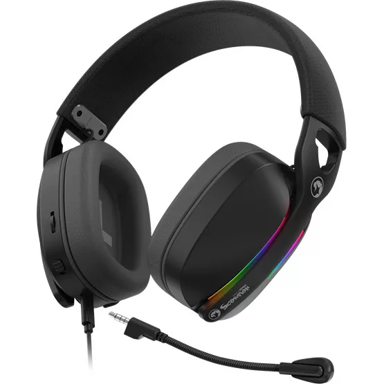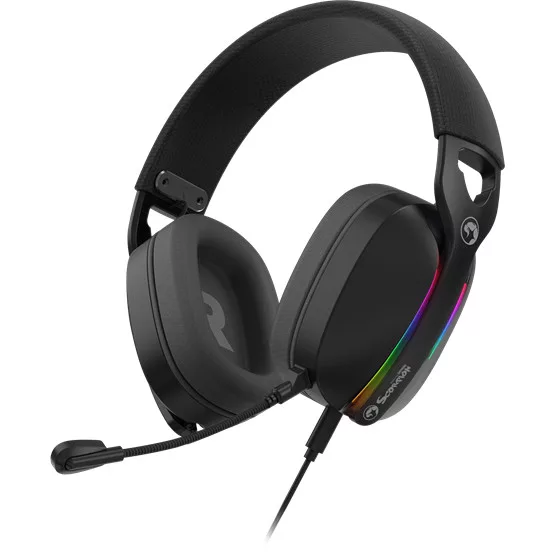 Merülj el a Marvo HG9086 BK gamer headset 7.1 virtuális surround hangzásában, amely minden irányból részletes és tiszta hangzást biztosít. A 40 mm-es hangszórókkal felszerelt fejhallgató USB csatlakozással, RGB háttérvilágítással és levehető mikrofonral rendelkezik, amely zajszűrős és omnidirekcionális. Könnyű kialakítása (193 g), puha PU bőr fülpárnái és állítható fejpántja kényelmes viseletet biztosítanak hosszú játékórák során.