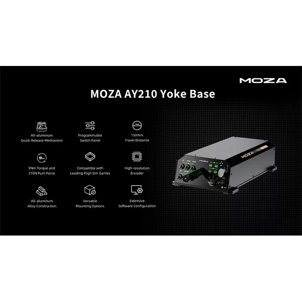 Tapasztald meg a repülésszimuláció következő szintjét a MOZA AY210 bilincsrendszerrel. Az AY210, amelyet mind a kisgépes, mind a kereskedelmi repülőgépek pilótái számára terveztek, páratlan realizmust kínál 9 Nm nyomatékkal, 210 N tolóerővel és 150 mm-es rugóúttal. A kettős nagy teljesítményű szervomotorok biztosítják a sima és precíz vezérlést, míg a teljesen alumínium gyorskioldó mechanizmus lehetővé teszi a bilincsek egyszerű cseréjét. A programozható kapcsolópanellel, az intelligens erő-visszacsatolással és a sokoldalú rögzítési lehetőségekkel az AY210 tökéletes választás a repülés szerelmeseinek és a szakembereknek. Zökkenőmentesen kompatibilis a vezető repülésszimulátorokkal az magával ragadó pilótaélmény érdekében.