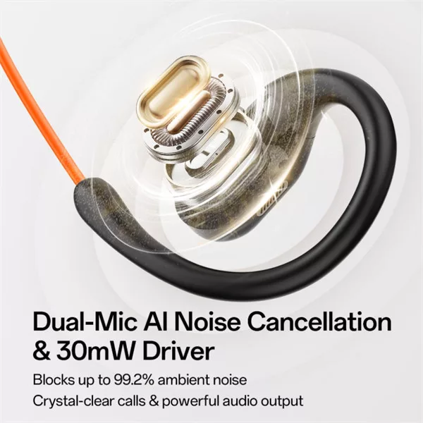 • Kettős mikrofon AI zajcsökkentéssel és 30mW-os meghajtóval – Két mikrofonnal és AI zajcsökkentéssel, amely akár 99,2%-kal csökkenti a környezeti zajt, valamint egy 15×10-es meghajtóval, amely akár 30mW kimenettel is elérhető, így tiszta hívásokat és erős hangzást biztosít.