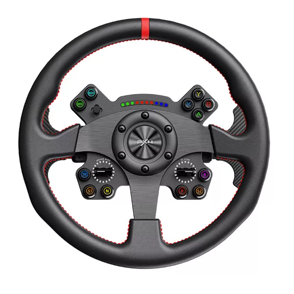 Professzionális, teljes kört lefedő kialakítás: 330 mm-es, mikroszálas bőrbe burkolt felni, ideális a magával ragadó rali és driftelés közbeni irányításhoz.