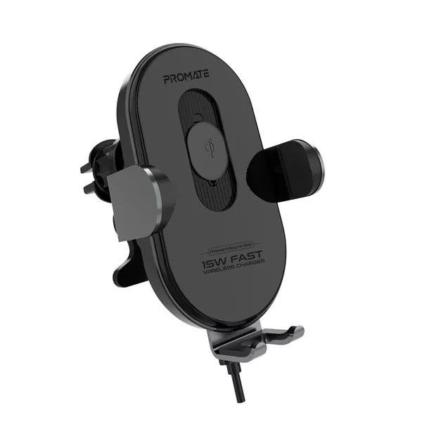 Promate Autós töltő - POWERMOUNT 15 (DC 12V/1.5A, 15W, 1.2 méter, okos szenzor, hajlítható állvány, fekete)