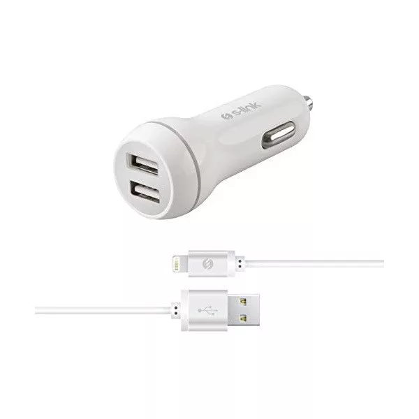 S-Link Autós töltő - SW-C530 (2db USB, 5V/2.1A, 5W, Micro USB, 100cm adat+töltőkábel, fehér)