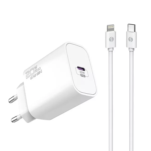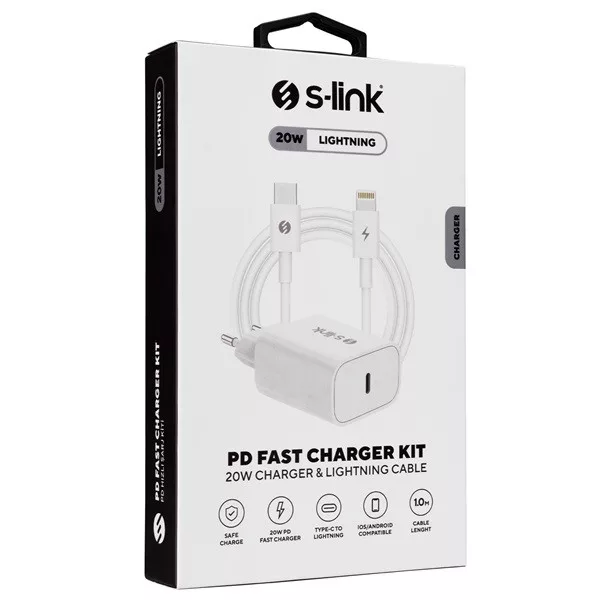 S-Link Hálózati töltő - SL-EC62PD (20W, QC4.0 Gyorstöltés,Type-C to Lightning, 100cm adat+töltőkábel, fehér)