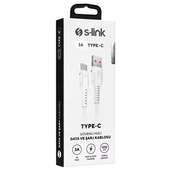 S-Link kábel - SL-X243 (3A, 15W, Gyorstöltés, Type-C, 100cm adat+töltőkábel, fehér)