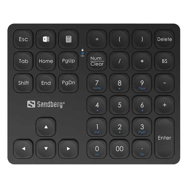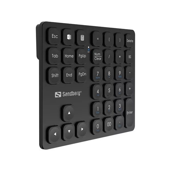 A Sandberg Wireless Numeric Keypad Pro a laptop billentyűzetének intelligens kiterjesztése. A 36 billentyű teljes számbillentyűzetet, gyorsbillentyűket, nyílbillentyűket és egyebeket foglal magában.