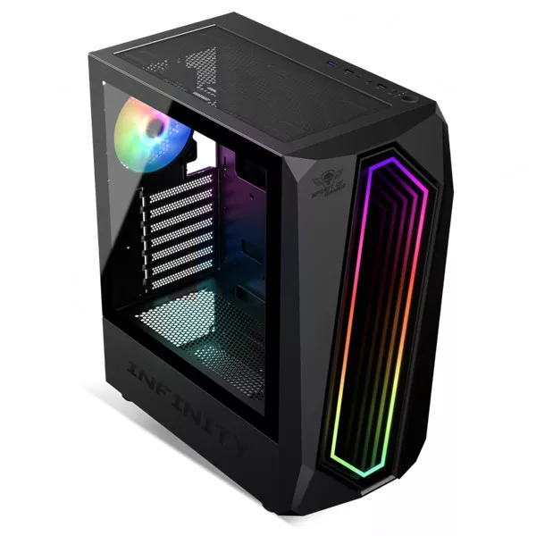 Spirit of Gamer Számítógépház - INFINITY Black (fekete, ablakos, 8x12cm ventilátor, alsó táp, ATX, 1xUSB3.0, 2xUSB2.0)