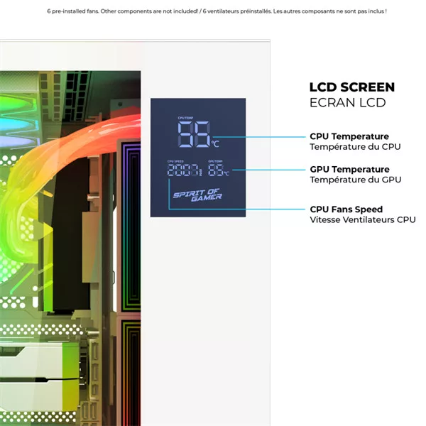 Spirit of Gamer Számítógépház - VIPER CRX White (fekete, ablakos, 6x12cm ventilátor, alsó táp, ATX, 1x USB-C, 2x USB-A)