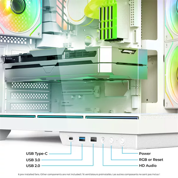 Spirit of Gamer Számítógépház - VIPER CRX White (fekete, ablakos, 6x12cm ventilátor, alsó táp,  ATX, 1x USB-C, 2x USB-A)