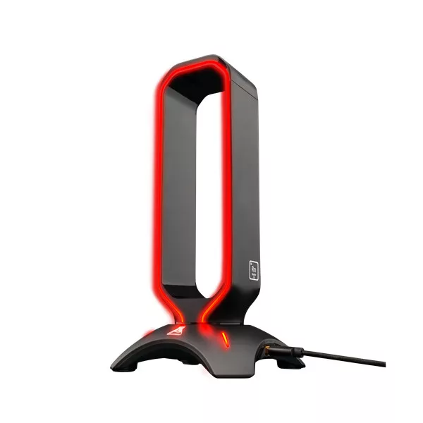 The G-Lab Fejhallgató állvány - K STAND RADON (fekete, 2xUSB3.0, műanyag)