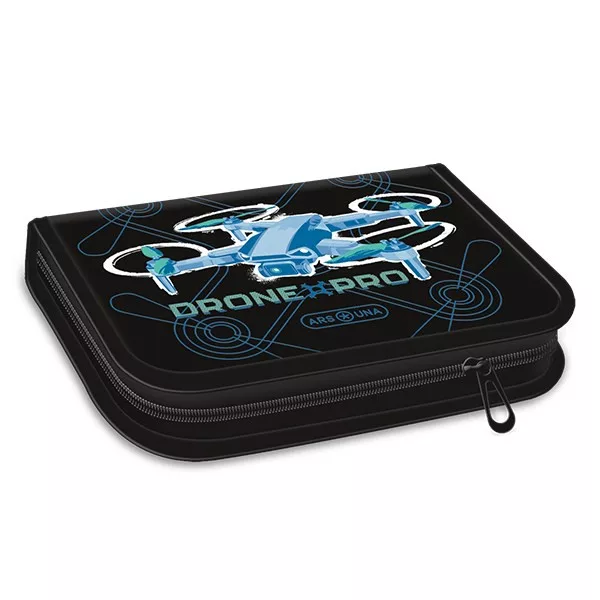 Írószerekkel töltött cipzáros tolltartó két kihajtható füllel, gumis kialakítással az írószerek tárolásához. Tartalma: 12 db színes ceruza, 3 db HB grafit ceruza, 1 vékony és 1 vastag postairón, 8 db színes filctoll, 1 db radír, 1 db hegyező, 1 db 17 cm-es egyenes vonalzó, 1 db háromszög vonalzó, órarend A és B hétre.