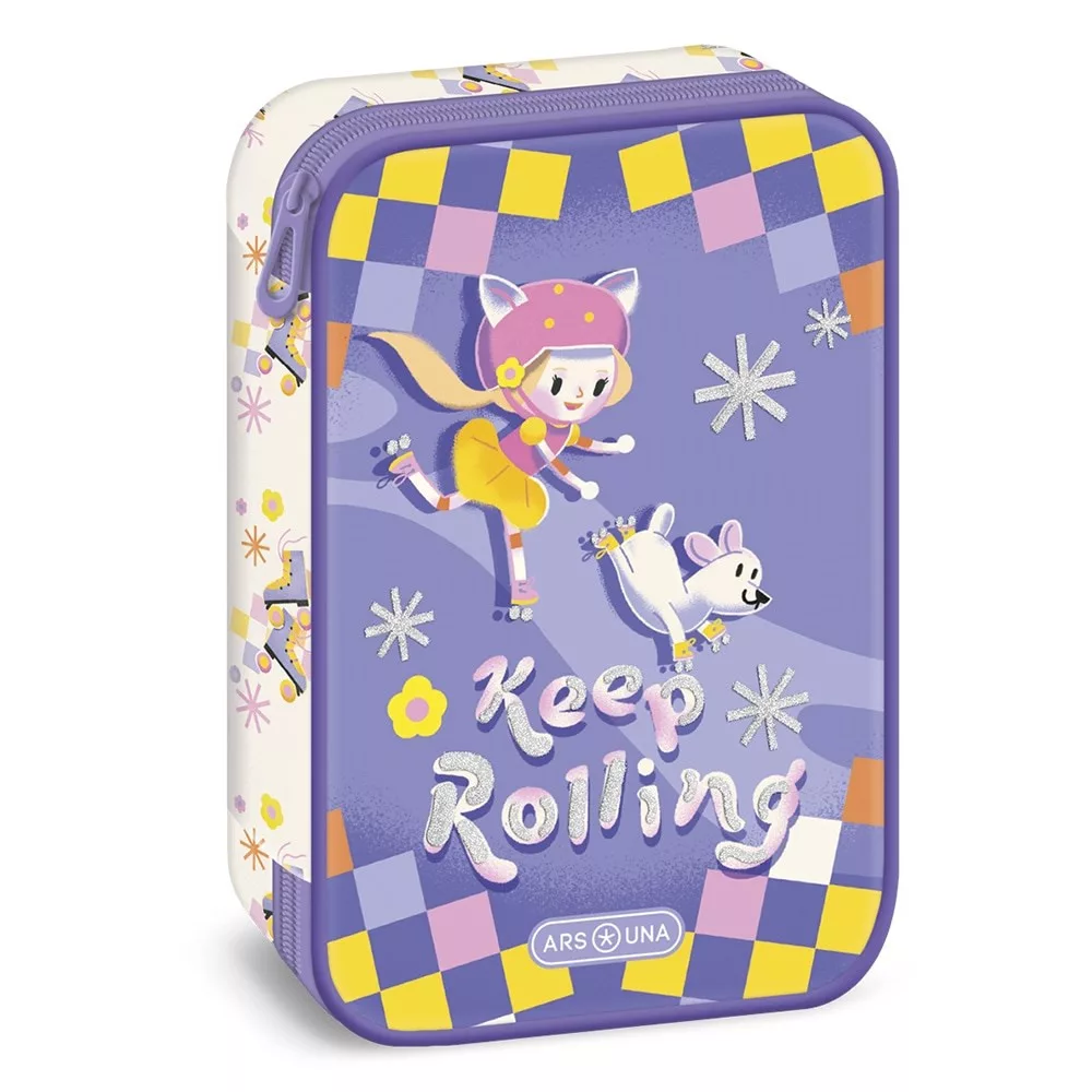 Többszintes, töltetlen, cipzáras tolltartó. Belül textillel bevont merev lapokkal, gumis kialakítással 30 ceruza számára az írószerek tárolásához és egy cipzáras belső zsebbel.