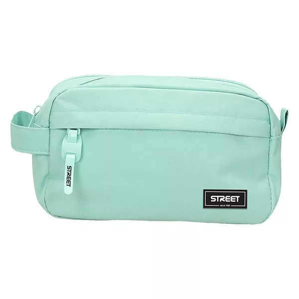 Ovális alakú textil tolltartó tároló rekesszel.